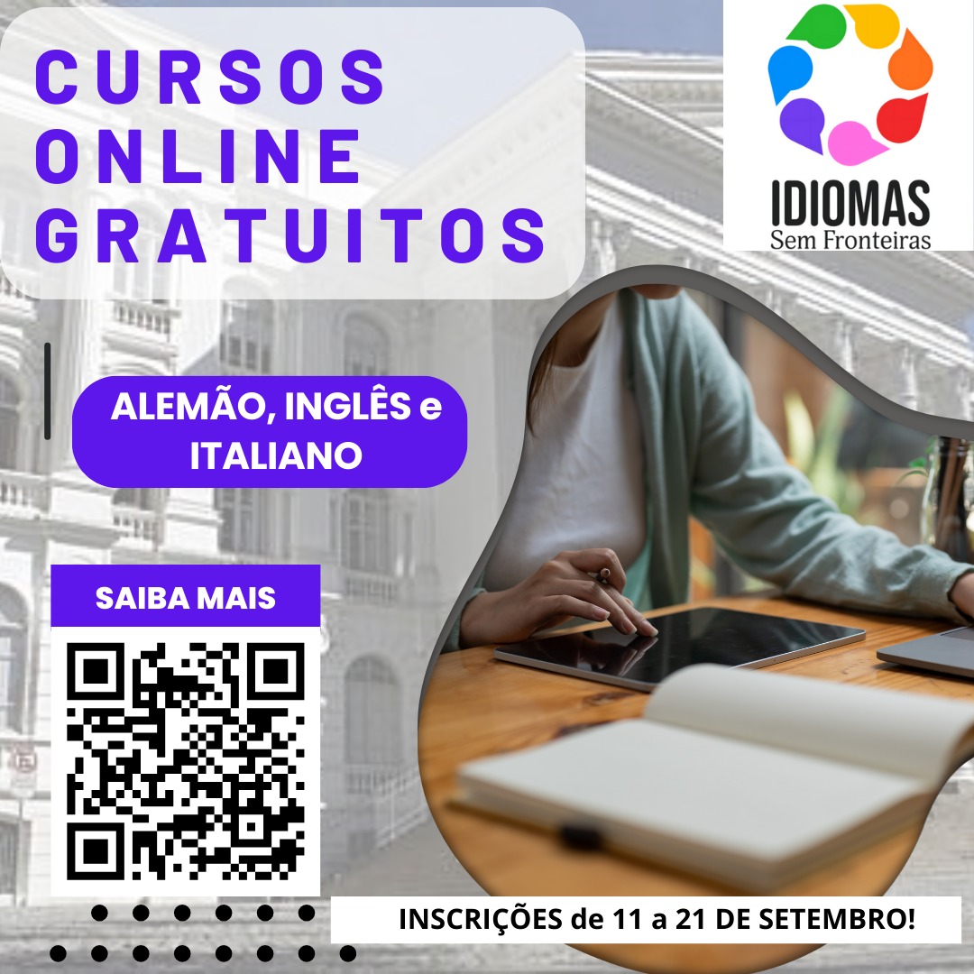A UFPR, por meio da Rede Andifes IsF, está com inscrições abertas para cursos on-line gratuitos de alemão, inglês e italiano. Mais informações no Edital. Aproveite esta oportunidade para aperfeiçoar seus conhecimentos em idiomas e se preparar para a mobilidade!