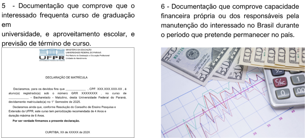 5 – Documentação que comprove capacidade financeira própria ou dos responsáveis pela manutenção do interessado no Brasil durante o período que pretenda permanecer no país.
